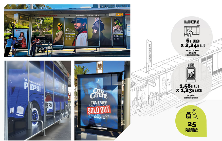 El tranvía es el gran impactador, pero una campaña completa necesita capas. En Publiservic Canarias te ofrecemos todos los soportes para envolver al público en cada punto del recorrido: